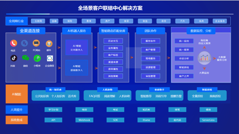 目前更可期可见的融合包括渠道融合、功能融合、数据融合等,它从客户接入、到客户服务、最终在服务数据管理中实现全套融合。而在人工智能的推动下,未来的智能服务不仅仅局限于人与人、人与机机器客服,任何客户与产品、企业产生沟通关系的触点都可以融入更智能客服服务。